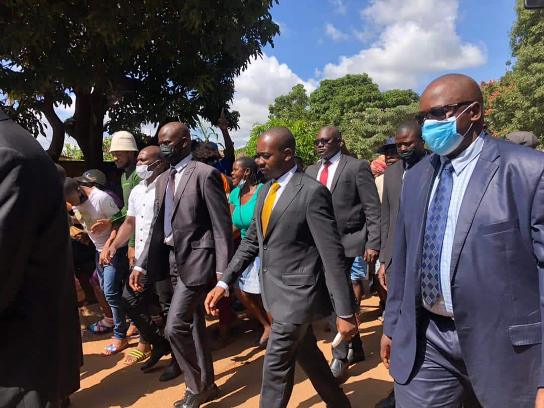 The CCC leader arrived at Kuwadzana 2 Primary School in the company of party deputy spokesperson, Ostallos Siziba and several other party members.