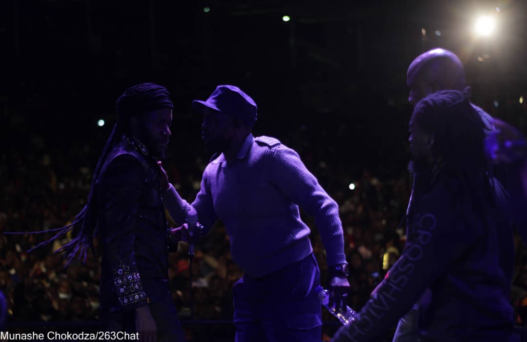 - A police officer on stage attempting to stop Winky D from performing